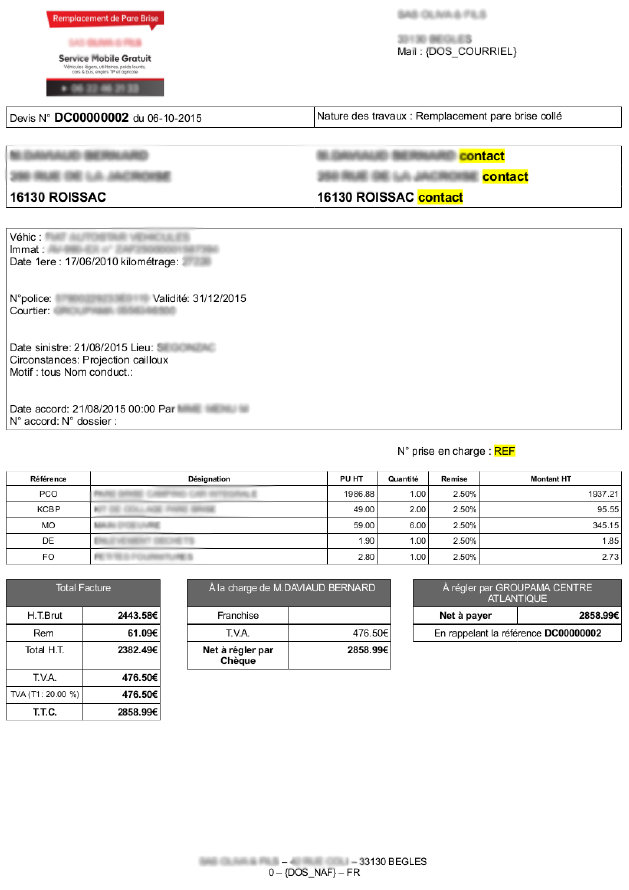 La nouvelle version propose d’intégrer directement un modèle préalablement conçu par vos soins et personnalisé sur un document Open office (fichier « ODT »). La solution reprendra ainsi automatiquement les informations contextualisées souhaitées :